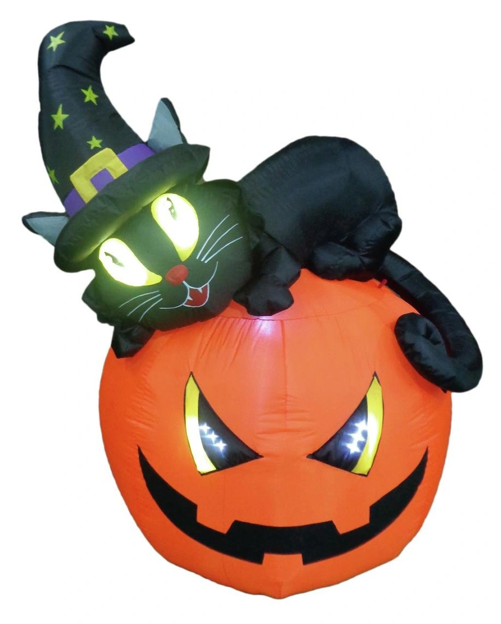 Lieferumfang: 1 x Aufblasbarer Kürbis mit Hexenkatze 150cm