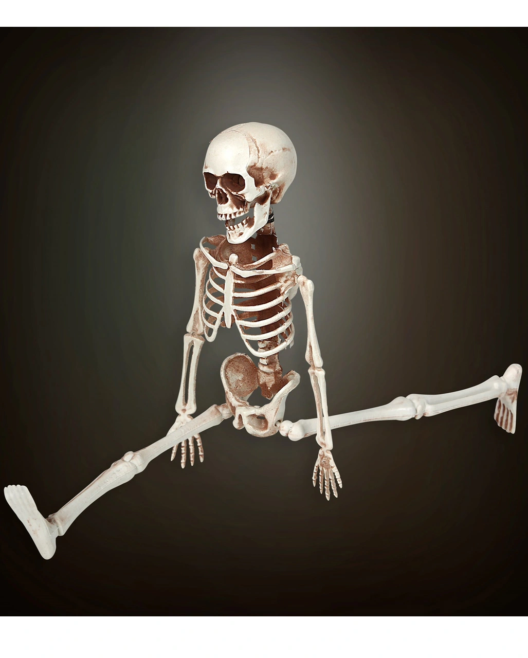 Unser bewegliches Skelett Gerippe ist 40 cm groß und besteht aus Kunststoff. Die Skelett Deko sieht sehr realistisch aus und lässt sich ohne großen Aufwand positionieren! Beine, Arme und Schädel des Gerippes sind beweglich, was dir flexible Positionen ermöglicht. Entdecke auch den Knochengerippe Flaschenhalter als Gruseldeko am Halloween Buffet!