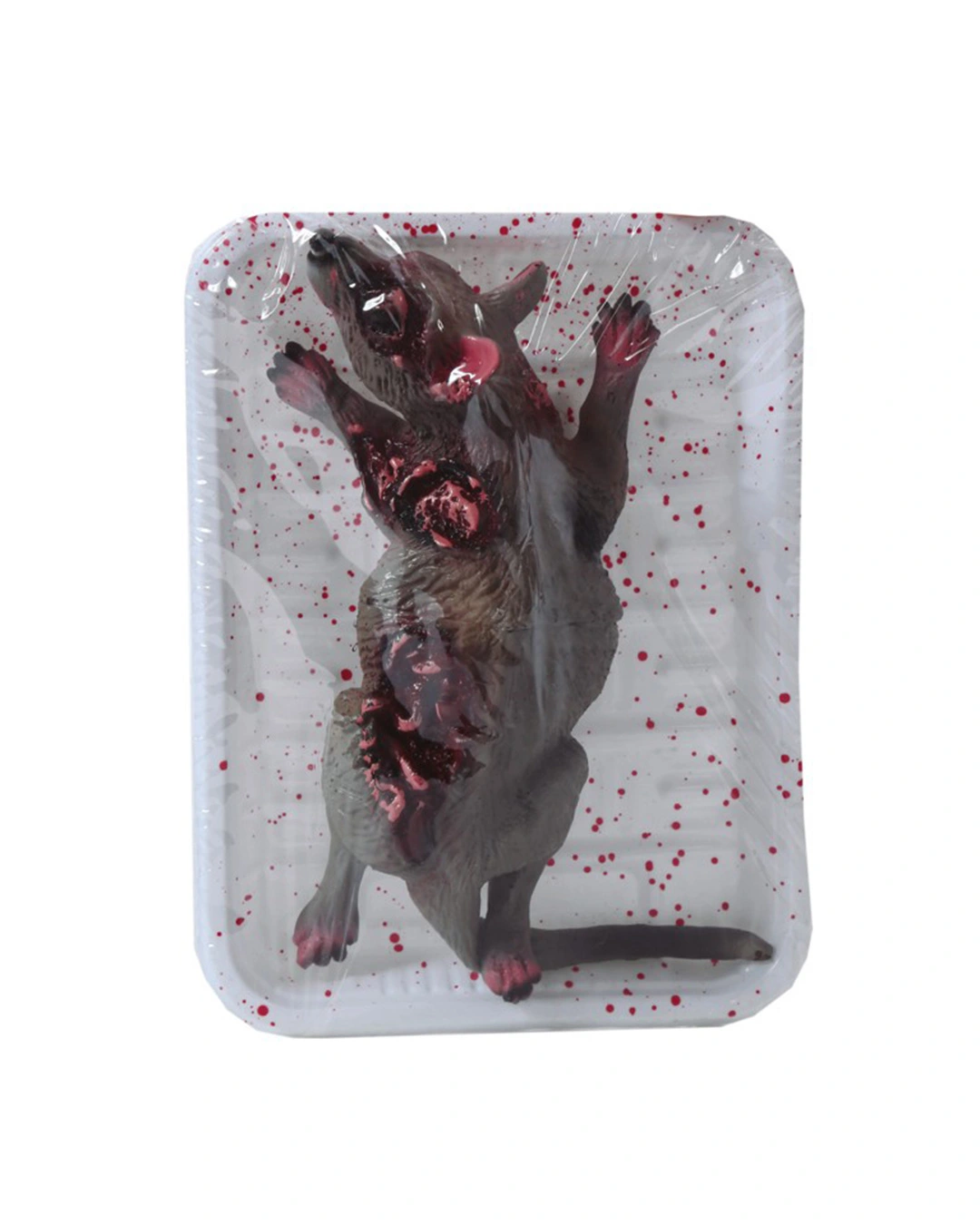 - In Folie eingeschweißter Rattenkadaver als Ekelige Dekoration