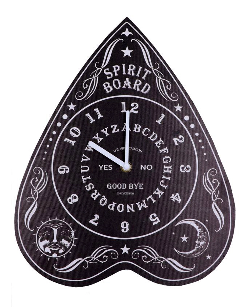 Die Welt der Geister und Dämonen ist dir näher als die unsere? Dann solltest du immer, wenn es dich nach der Geisterwelt sehnt, einen Blick auf diese Hexenbrett Wanduhr werfen. Der Ouija Zeiger als Wanddekoration zeigt dir stets die Uhrzeit an, sodass du keine spirituelle Sitzung mehr verpasst. Du erkennst Buchstaben, Ziffern sowie die Worte YES, NO & GOOD BYE. Dank dieser okkulten Gothic Wanduhr bist du stets pünktlich und setzt gleichzeitig ein mystisches Statement in deiner Gruft. Noch mehr Ouija Wohnaccessoires findest du bei uns im Onlineshop.