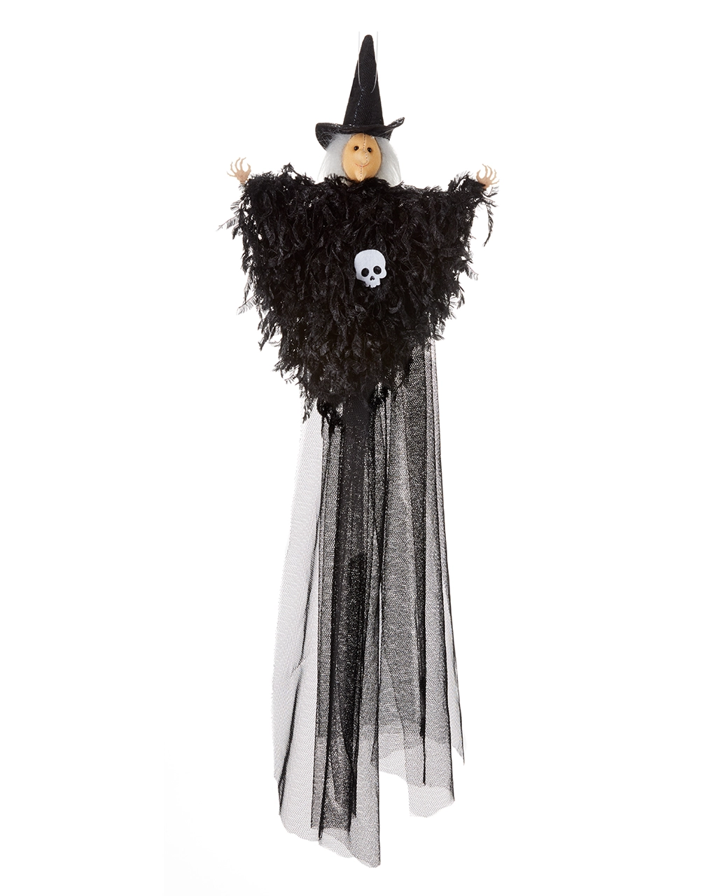Schwarze hängende Hexe mit Totenschädel 53cm